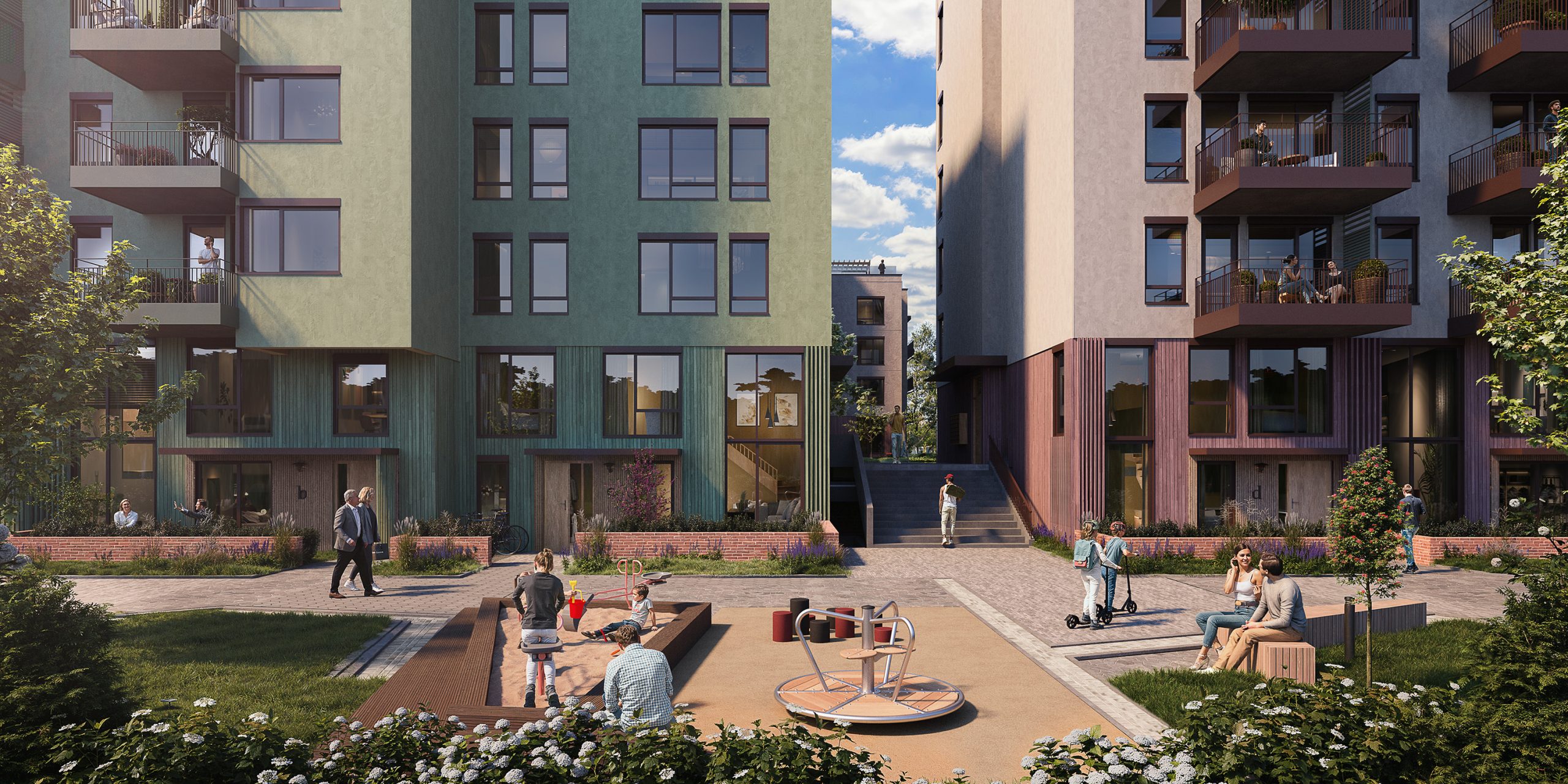Kobberkvartalet skal være et trygt, grønt og inspirerende bomiljø med rom for fellesskap og aktivitet for mennesker i alle aldre. Her skal det være godt å leve – midt mellom natur og by.