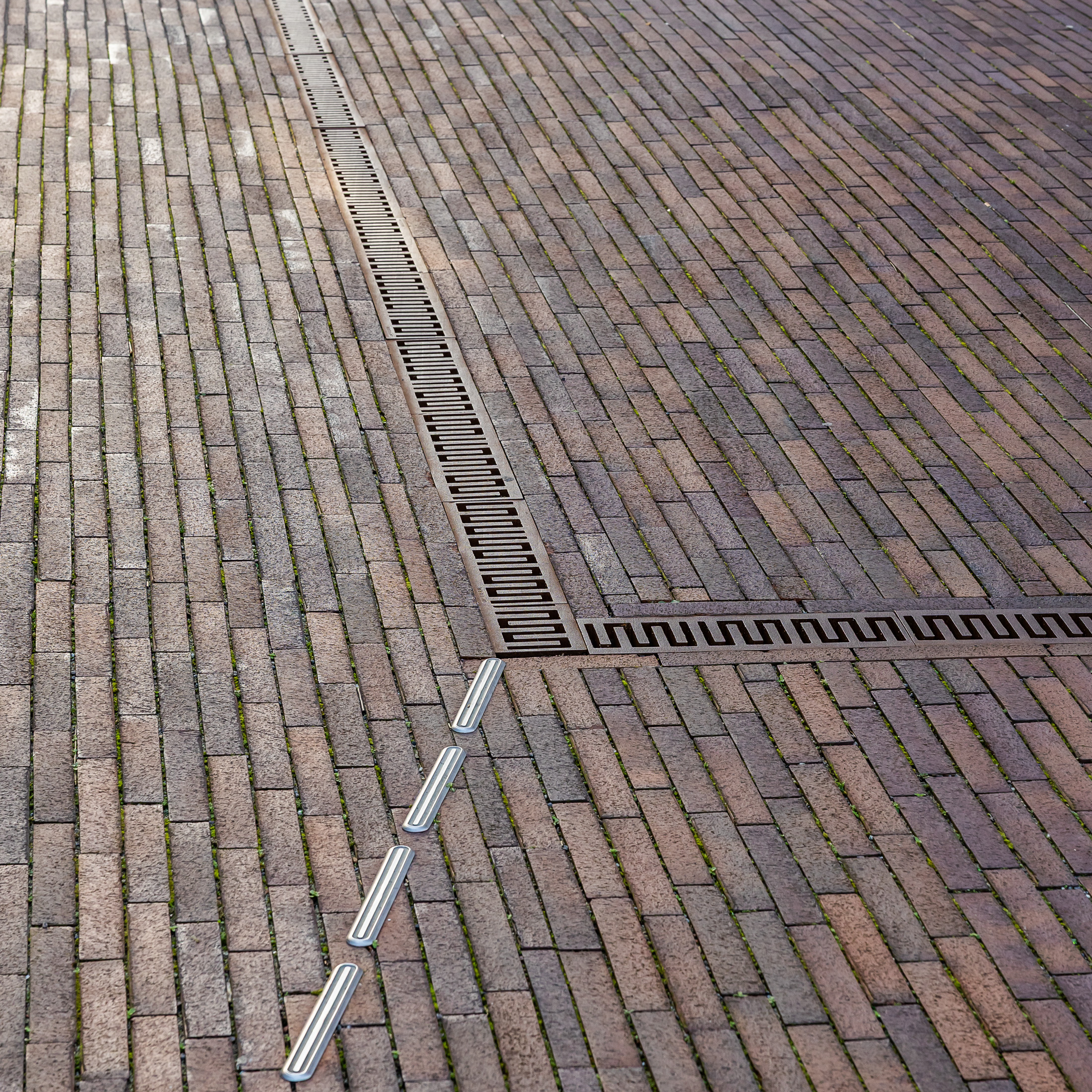En sentral utfordring i prosjektet var håndtering av overvann, med en tilnærmet flat tomt i et flomutsatt område. Løsningen ble et dekke med permeable fuger og et underlag av knust leca, som har fordrøyende effekt. Overvannet ledes videre til fordrøyningsmagasiner under fortauet.