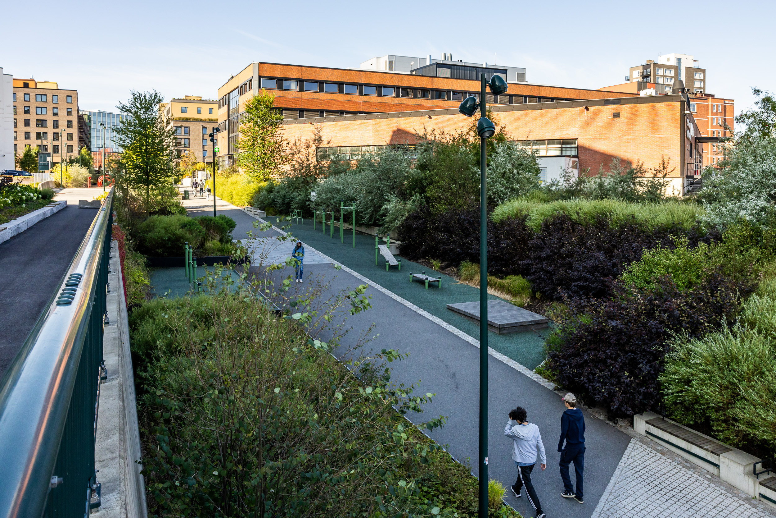 Vegetasjonen er naturinspirert og plantet etter Matrix-prinsippet, der robuste, ville arter danner grunnlaget, mens fargerike stauder og gressarter i ulike høyder gir prydverdi og årstidsvariasjoner. Beplantningen er utviklet i tett samarbeid med Oslo kommune.